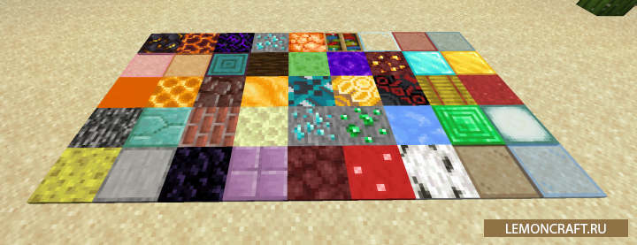 Мод на ковры More Carpets добавляет в игру большое количество новых ковров из ванильных блоков. После установки мода создание ковров возможно не только из шерсти, но и из таких блоков, как дерево, стекло, алмазы, грибы и др.. Для создания ковра используйте специальные палочки в комбинации с нужным вам блоком. Теперь весь ваш дом будет украшен новыми коврами.